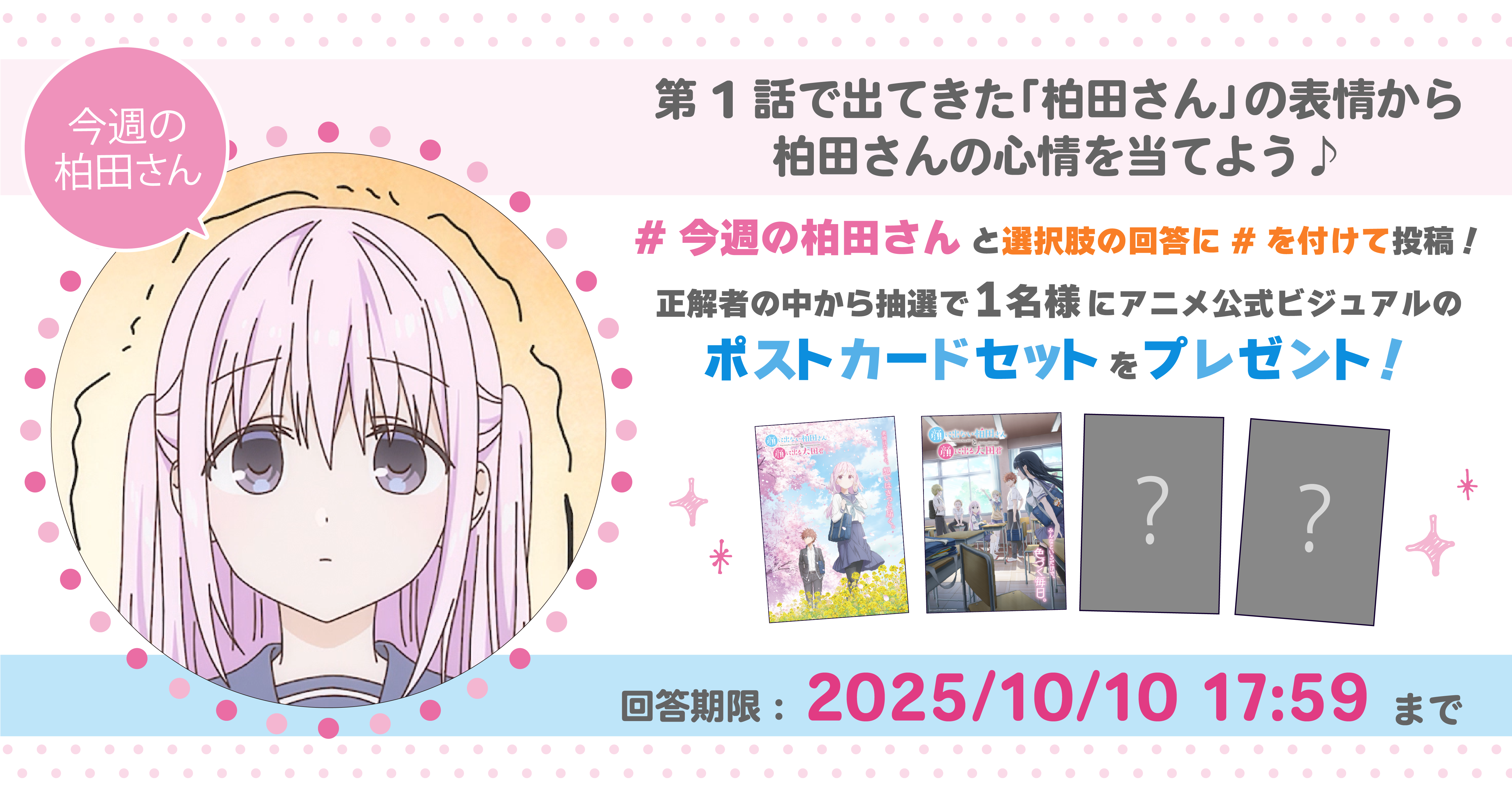 アニメ公式ビジュアルポストカードセットが当たる「今週の柏田さん」キャンペーンが開始しました!