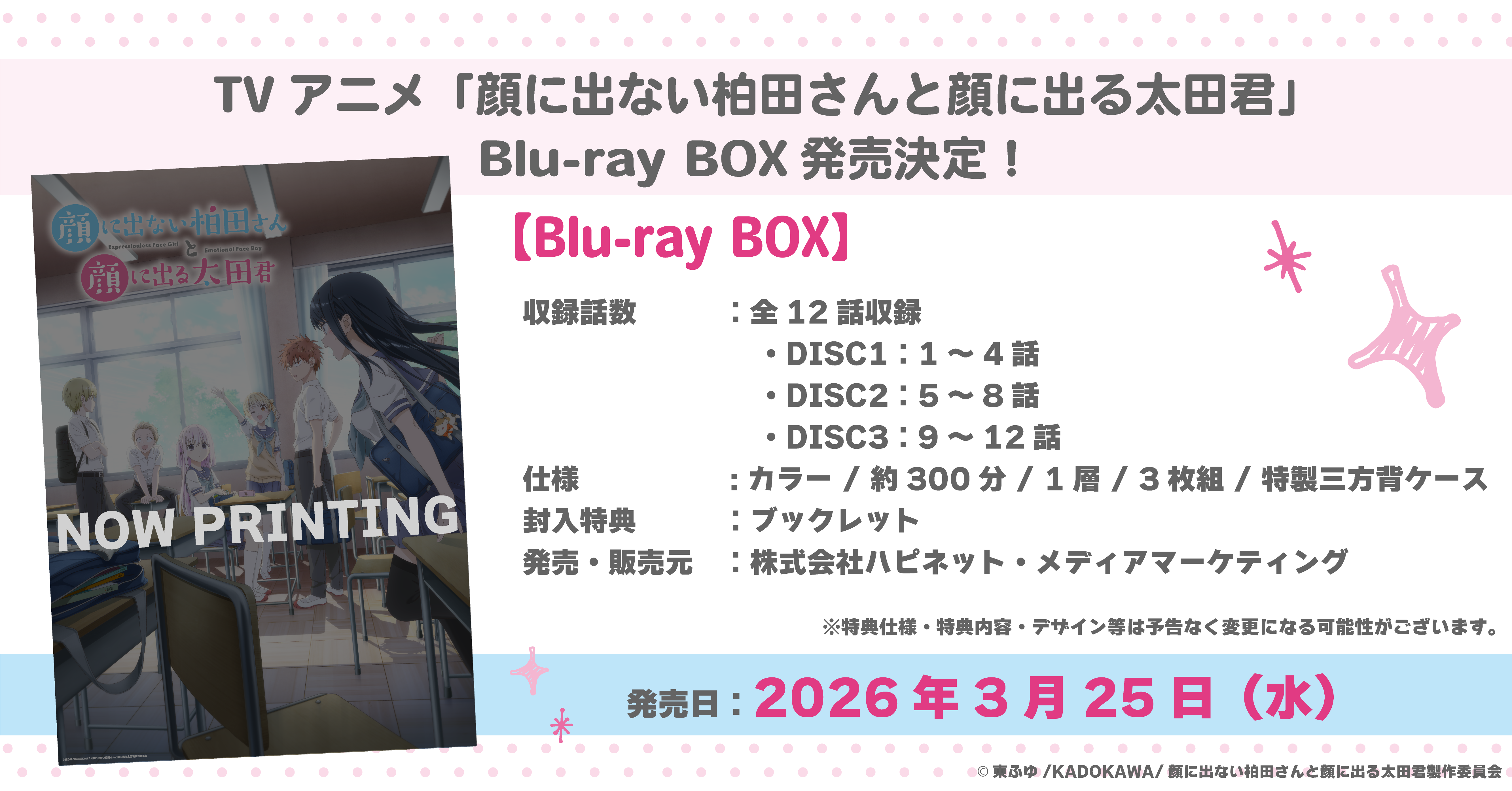 TVアニメ「顔に出ない柏田さんと顔に出る太田君」のBlu-ray BOXの発売が決定いたしました!
